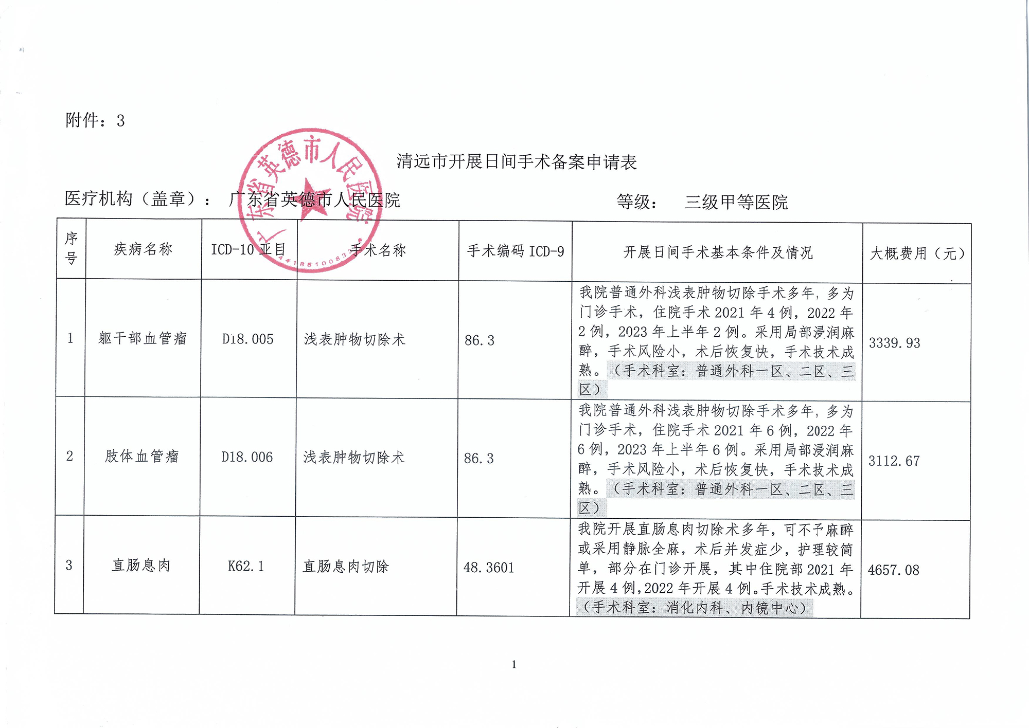 广东省英德市人民医院第二批日间手术清远医保支付病种目录表