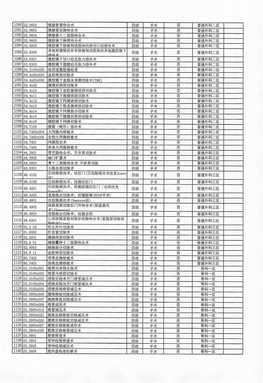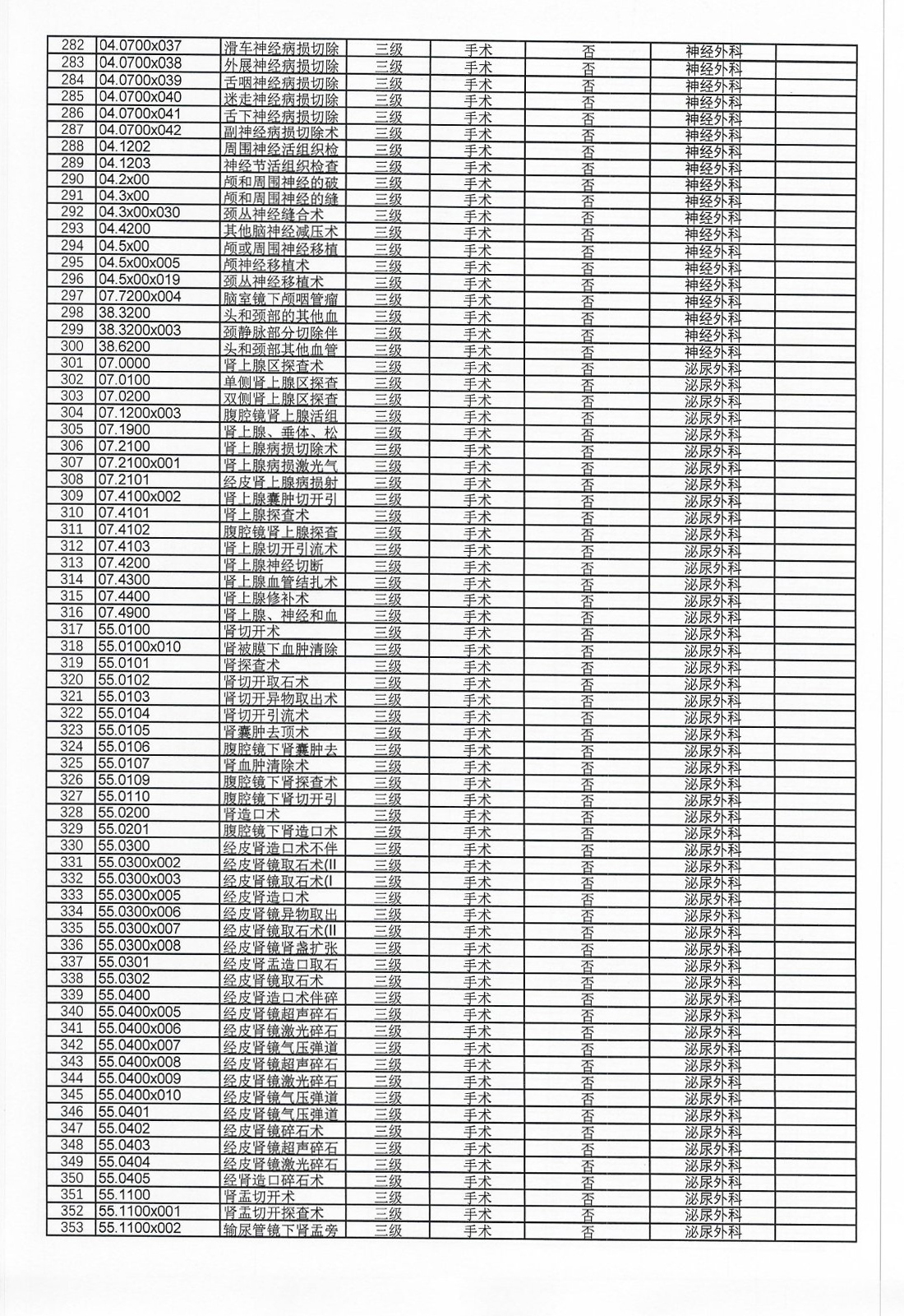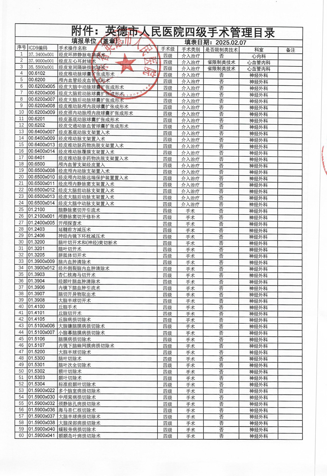 广东省英德市人民医院三、四级手术管理目录