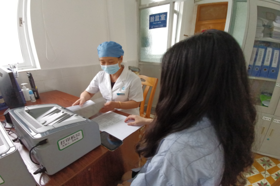 刘露晖医生在给孕检人员讲解优生优育健康知识