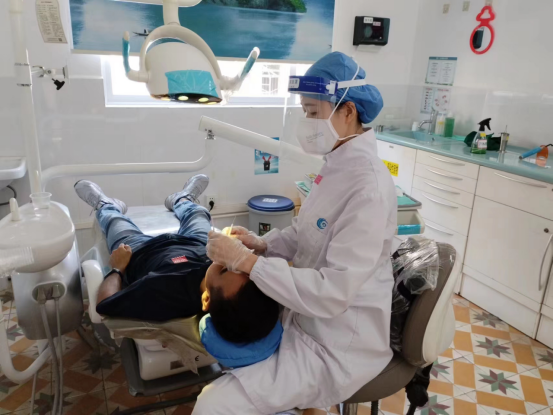 口腔科医师在给病人认真做治疗
