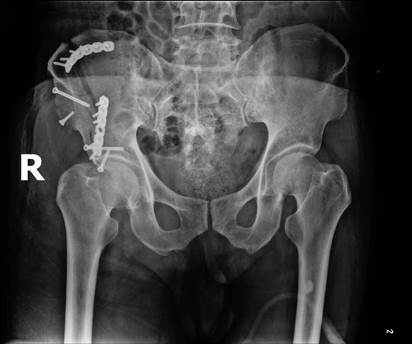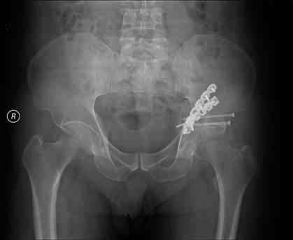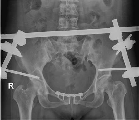 病例一:左髋臼骨折、骶髂关节脱位,Tile C3分型,术后复查X线
