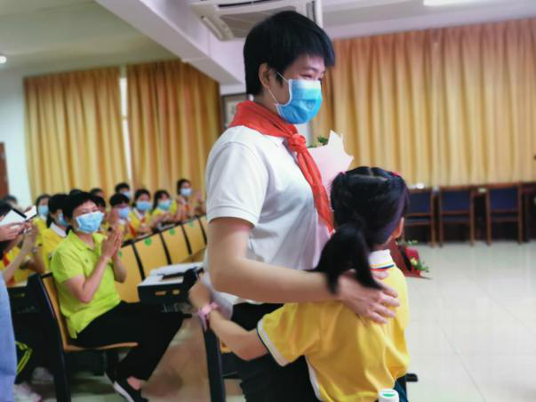 9名少先队员代表倾情表演唱《听我说谢谢你》,温暖有爱的歌声送给敬爱白衣天使。随后,英雄的孩子手捧鲜花走上讲台,大声说出自己的心里话:“妈妈!您是我心目中的超级大英雄,您辛苦了,我爱您!” 活动圆满结束。