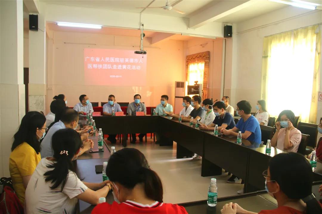 8月11日下午,在英德市人民医院外联部积极组织协调下,广东省人民医院“组团式紧密型”帮扶队专家、“派驻”帮扶队专家一行17人,深入黄花镇卫生院开展调研活动,了解基层卫生院的服务能力和群众的健康需求,为疑难重症患者进行会诊,不断提升基层卫生院服务能力,让乡镇群众在家门口就能享受到省医的医疗服务。英德市人民医院外联部、健康管理中心主任刘晓为,骨科二区主任助理陈俊柱,以及大五官科护士长付秀丽等科室领导和工作人员陪同调研。