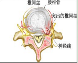 腰椎间盘突出是指腰椎间盘发生退行性病变后,纤维环部分或全部破裂,髓核单独或者连同纤维环、软骨终板向外突出,刺激或压迫窦椎神经和神经根引起的以腰腿痛为主要症状的一种综合征。
