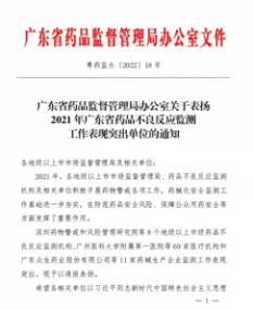 喜报传来,广东省药品监督管理局《关于表扬2021年广东省药品不良反应监测工作表现突出单位的通知》粤药监办[2022]18号,英德市人民医院被评为2021年度广东省药品不良反应监测工作表现突出的医疗机构。