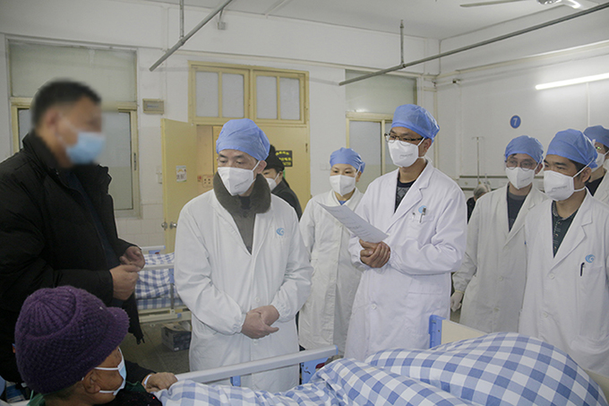 图丨中医科主任尹苏平带领医护人员查房,与患者家属交流病情,对症施治,