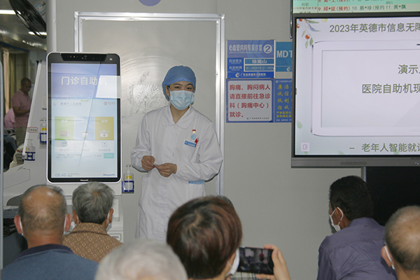 5月11日,“银发无忧就诊 信息沟通无碍”--2023年老年人智能就诊现场教学活动,在英德市人民医院综合门诊四楼顺利开展。共48位老年患者,以及家属约50多人参加了讲座。行政党支部8名志愿者及门诊办、防保科、网络中心、宣传科等相关科室人员配合积极参加。