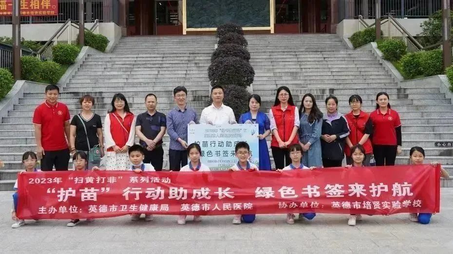 5月12日,由医院党委办公室、扫黄打非工作领导小组办公室牵头,组织了医院团委、健康管理中心、宣传科、急诊科、营养科等科室的医疗志愿者走进校园,为英德市【英德市培贤实验学校】600多名师生开展了主题为【“护苗”行动助成长,绿色书签来护航】2023年“绿书签行动”宣传活动。
