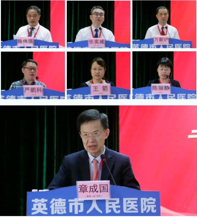 广东省卫生健康委医政医管处处长张发滨在讲话中,首先感谢评审组专家们的辛勤付出以及英德市人民医院全体干部职工为“三甲”创建工作所付出的努力。并充分肯定清远市、英德市党委政府及卫生健康部门,多年来为英德市人民医院创建“三甲”医院工作的支持,以及英德市人民医院近年来为人民群众提供优质高效的医疗服务作出的努力。同时,张发滨还提出了三点希望,一是希望清远和英德市委市政府继续加大对英德市人民医院的支持力度;二是希望医院继续在日常管理上下功夫;三是希望医院继续大力推进高质量发展,认真落实“三甲工作日常化,日常工作三甲化”,更好地服务人民群众。清远市副市长杨焕在讲话中指出,英德市人民医院始终以创建“三甲”医院为重要抓手,围绕满足群众“看好病、负担轻、服务好、就医近”的需求,持续加大力度推进医疗质量、内涵建设、管理水平和医疗服务能力建设,不断提升医疗服务能力水平,为英德广大人民群众的身体和生命健康提供了坚强有力的支撑。通过此次评审,专家组严格按照标准对英德市人医进行了全面、深入的检查和考核评审,既肯定了医院发展取得的成绩,同时又抓住了关键,开出了“良方”,英德市人民医院不断发展将为全市120万群众提供更优质、更高效、更便捷的医疗服务。英德市委书记张杨彬首先向评审组专家连日来的辛勤付出、精心指导和“把脉会诊”表示衷心的感谢和崇高的敬意。张杨彬指出“民有所呼,我有所应”,不断满足人民群众对美好生活的需要是英德市委、市政府持之以恒的奋斗目标。英德市人民医院是英德市综合医疗水平的核心代表,也是全市医共体建设的牵头单位,推动市人医“创三甲”,是全市上下的一件大事、要事。张杨彬充分肯定了英德市人民医院在基础设施建设、人才培养、学科建设几方面取得的成绩和长足的发展,并不断满足人民群众对优质医疗资源的需要。他强调,本次评审,既是对英德市人民医院综合实力的一次体检,也是对全市医疗卫生事业发展成效的一次检阅,英德市委市政府将照单全收,继续强化人才工作和医院建设,支持人民医院高质量发展。希望市人医以此次评审为起点,严格按照专家提出的指导意见,进一步转变观念、勇于担当、卯足干劲、力争上游,常态化、长效化,让英德120万老百姓享受到更加便捷、更有温度、更有质量的医疗服务。