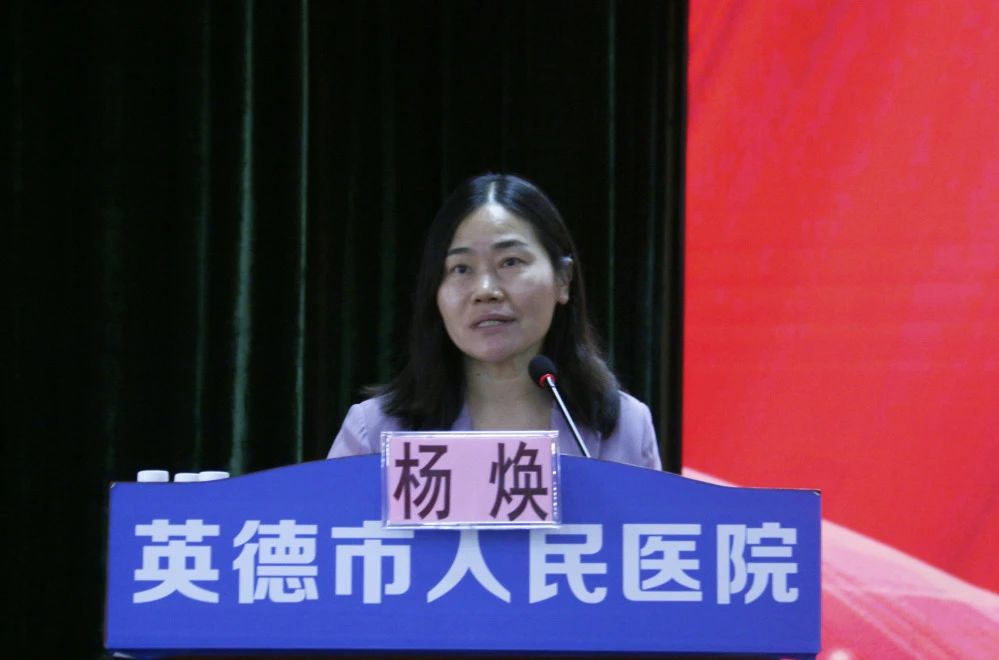 英德市人民政府副市长李巧玲致欢迎词。多年来,李巧玲作为市人医创建“三甲”工作的分管市领导,她始终躬身入局、亲力亲为,全程跟进每一次专家指导培训、强化培训的迎来送往,不定期对市人医进行日常工作的检查督导。如今终于迎来正式评审,李巧玲怀着激动的心情向专家组的到来表示热烈的欢迎和衷心的感谢,并就英德市概况、医疗卫生现状、市人医综合服务能力等进行介绍,阐述了创建“三甲”医院是造福120多万英德百姓、推进“大病不出县”医改目标的必然需求。