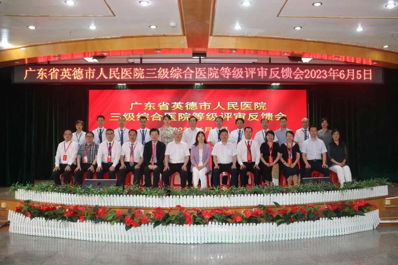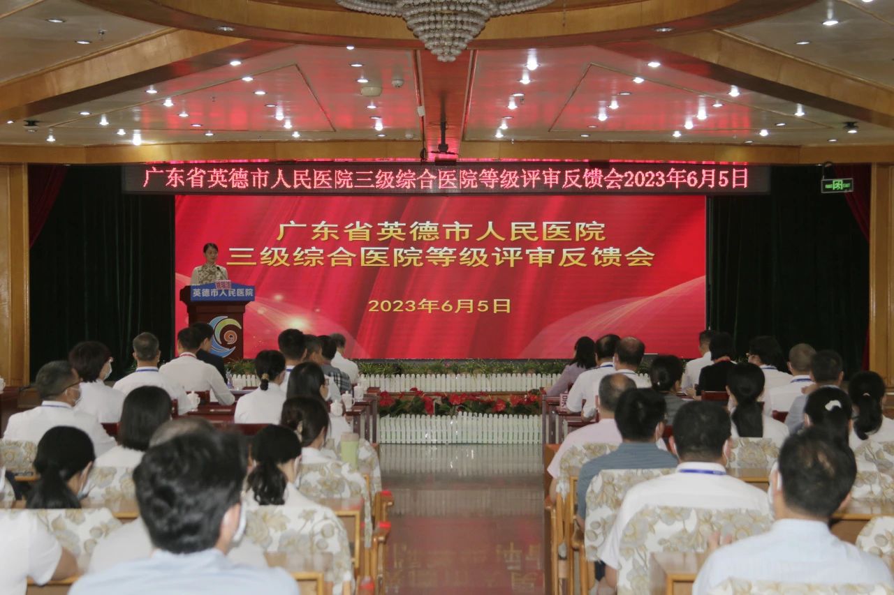 评审反馈会由广东省卫健委医政医管处一级主任科员姚瑞洁主持。清远市卫生健康局局长李晓宇,英德市人民政府副市长李巧玲,英德市卫生健康局局长邓明华,以及清远市卫生健康局、英德市人民政府、英德市卫生健康局相关领导和英德市人民医院党政班子成员,全院中层干部和科室骨干参加了反馈会。