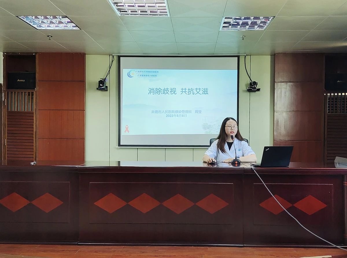 周莹开展以“消除歧视 共抗艾滋”为主题的健康知识讲座。重点讲解艾滋病概况、临床表现与分期、艾滋病防治知识等内容,呼吁大家树立健康的生活理念,消除对艾滋病感染者的歧视,做到携手遏制艾滋,共创美好家园。