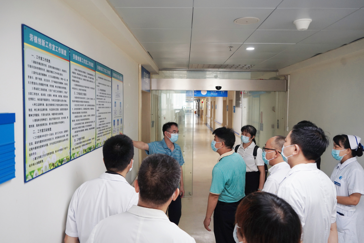 8月18日上午,清远市总工会副主席巫伯池、组宣部办事员林鉴华一行到英德市人民医院,实地检查督导【吴凡宇劳模创新工作室】的创建进度和运行情况,英德总工会副主席廖宇红及相关工作人员一同前往。