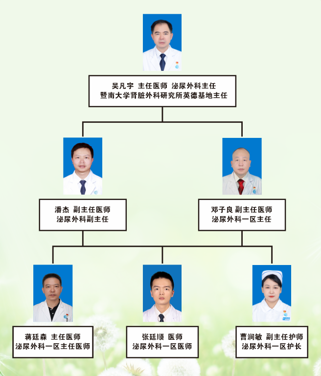 英德市人民医院【吴凡宇劳模创新工作室】设在泌尿外科,业务用房面积3100平方米。工作成员6人,其中由理论水平强、创新能力强、工作经验丰富的“广东省‘五一’劳动奖章获”得者吴凡宇同志为领衔人,成员有大泌尿外科副主任潘杰、泌尿外科一区主任邓子良、泌尿外科一区主任医师蒋廷森、泌尿外科一区研究生张廷顺、泌尿外科一区护士长曹涧敏。