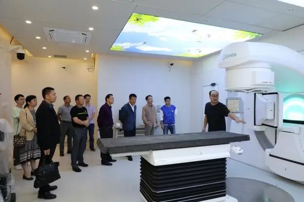 座谈结束后,卢永刚、蓝志坚、邓明华等领导还参观了英德市人民医院在建的肿瘤防治中心,吴凡宇从功能布局、工作推进、发展规划等方面作了介绍。卢永刚对英德市人民医院近年来的发展给予充分肯定。
