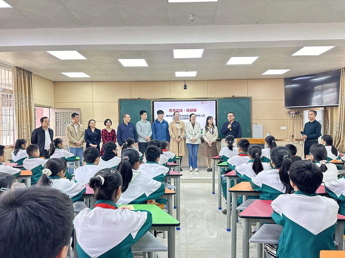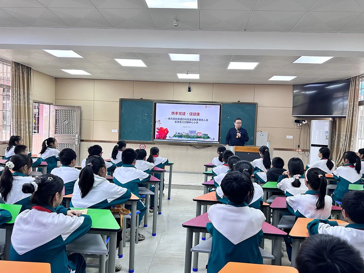 南方医院健康科普团队到连江口镇中心小学开展健康教育急救技能培训。团队由王亚楠、朱晓慧、朱木兰等10名专家组成,为学校师生带来了关于心肺复苏、海姆立克法急救方面的医学知识,同时手把手向师生们进行现场教学。同学们热情高涨,争先恐后进行练习。