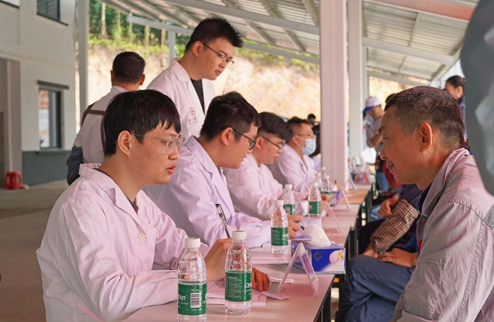 南方医院和英德市人民医院党员义诊专家团队到连江口镇鸿泰玻璃厂开展义诊活动。团队由葛军娜、黄凯铧、梁炜祺等20名专家组成,为100余名企业职工提供免费的听诊、问诊,血糖、血压、B超、心电图、X光等健康检查和健康咨询等服务。