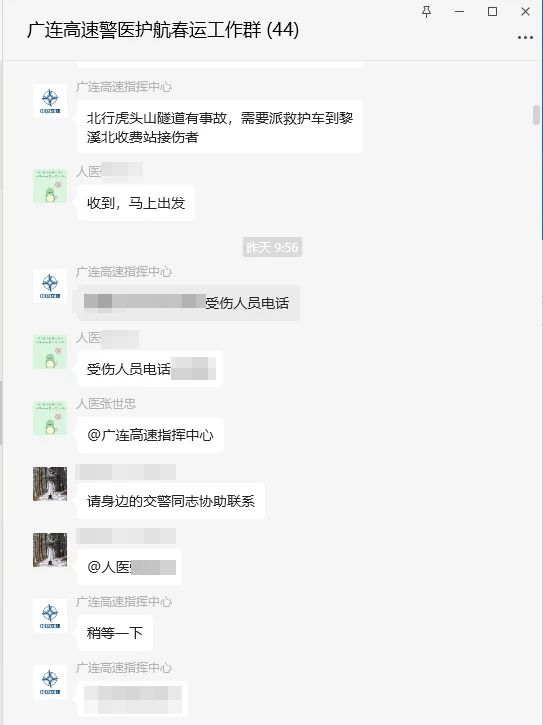 广连高速指挥中心发出指令:北行虎头山隧道有事故,需要派救护车到黎溪北收费站接伤者。