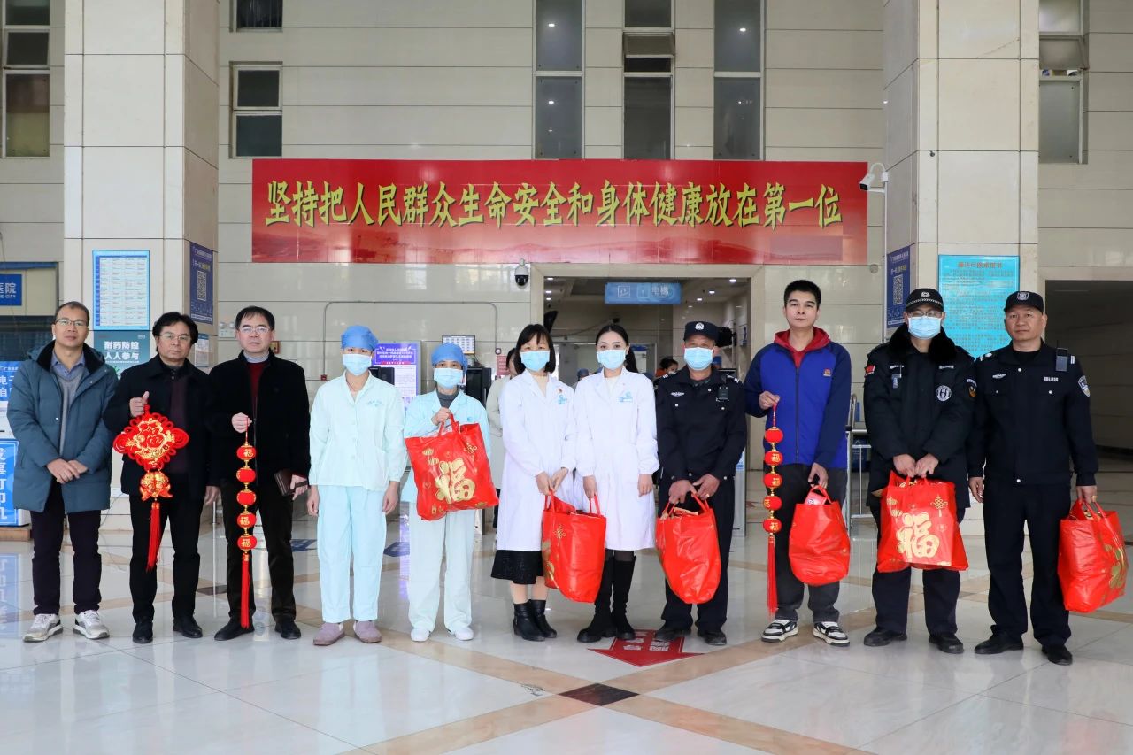 2月10日大年初一,英德市人民医院党委书记吴凡宇带队深入一线,走访慰问坚守岗位的医务人员、后勤人员,送上新春的祝福。