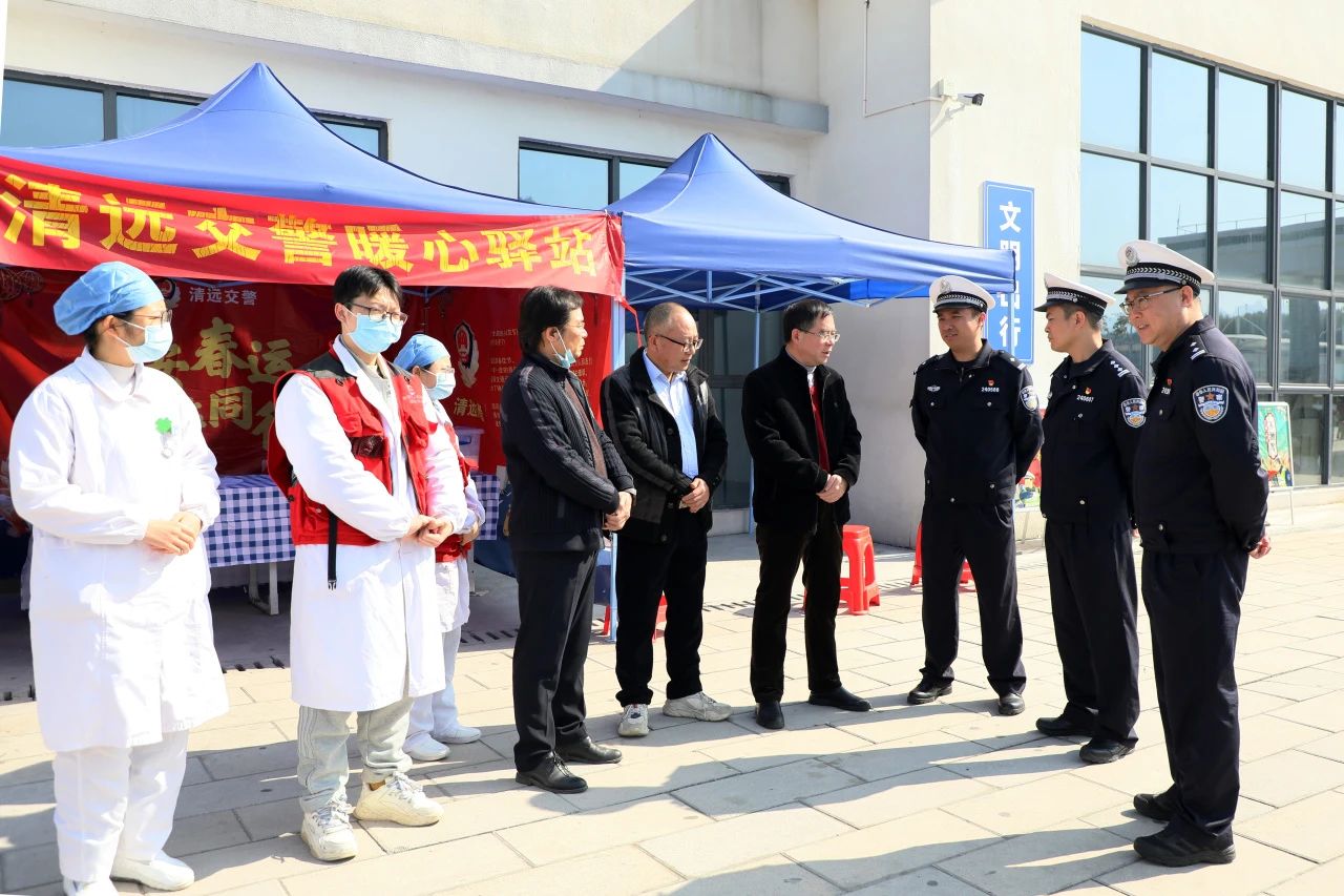 在大湾服务区“清远交警暖心驿站”,吴凡宇与清远市公安局交通警察支队副支队长郭建欣就加强党建引领、保障平安春运进行深入交流。郭建欣分析车流情况,对接下来的返程高峰医疗保障工作进行部署,并对英德市人民医院主动出击,将春运医疗保障关口前置给予充分肯定。