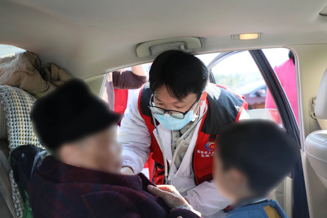 大湾服务区英德人医医疗保障服务站的医护人员主动服务,为旅途中突感不适的老人进行检查和药物治疗,给予出行健康处方。医护人员的暖心服务得到现场群众的一致好评。