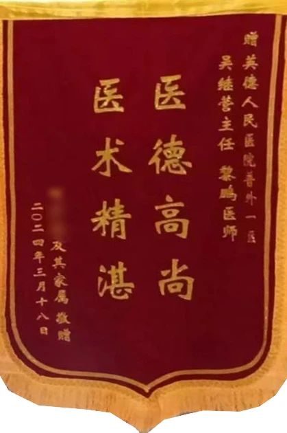 日前,英德市人民医院成功为一名93岁结肠癌患者实施腹腔镜下右半结肠癌根治术。患者已康复出院,家属送上锦旗,感谢普外一区医护团队的精心治疗。