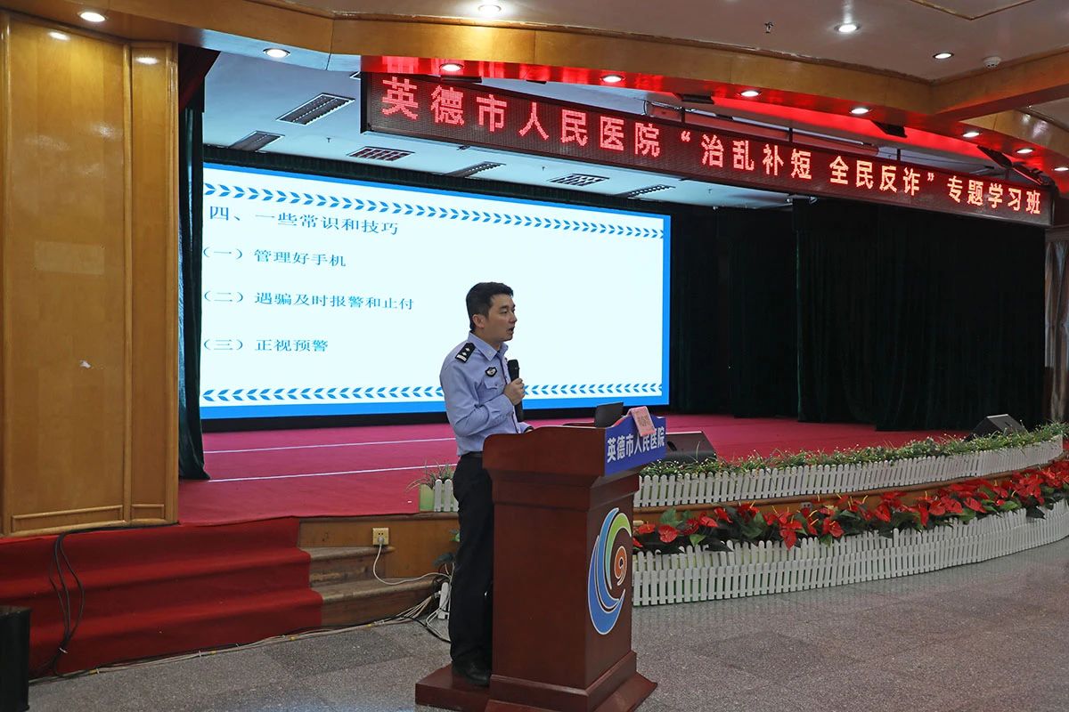 随着社会的发展和信息技术的不断进步,各种新型诈骗犯罪层出不穷,为深入推进防范电信网络诈骗工作,进一步提高广大医务人员的防范电信网络诈骗的安全意识,4月28日下午,英德市人民医院开展“治乱补短 全民反诈”专题学习班。医院邀请英德市反诈办赖静群警官前来授课,党政领导班子、中层干部参加了此次学习班。警医联合,共同发力,打好反诈“预防针”,筑牢“防骗墙”,守护医护人员的“钱袋子”。