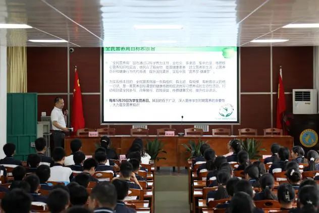 英德市人民医院潘光标副主任医师结合生活实践,作“健康中国 营养先行”主题授课,向现场师生宣讲什么是科学营养,怎么才能吃得好、吃出健康。
