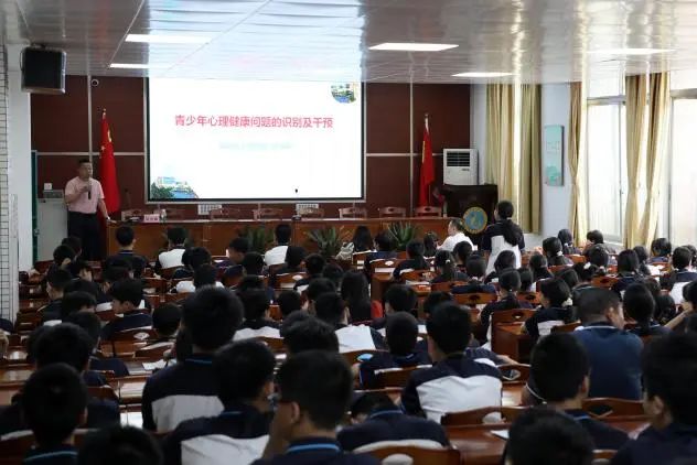 吴学锋副主任医师围绕“青少年心理健康问题的识别及干预”主题,讲解了青少年一般心理特点、影响青少年心理健康常见社会心理因素等内容,通过互动,与现场学生一同分析厌学原因,并引导学生怎样去克服厌学情绪。