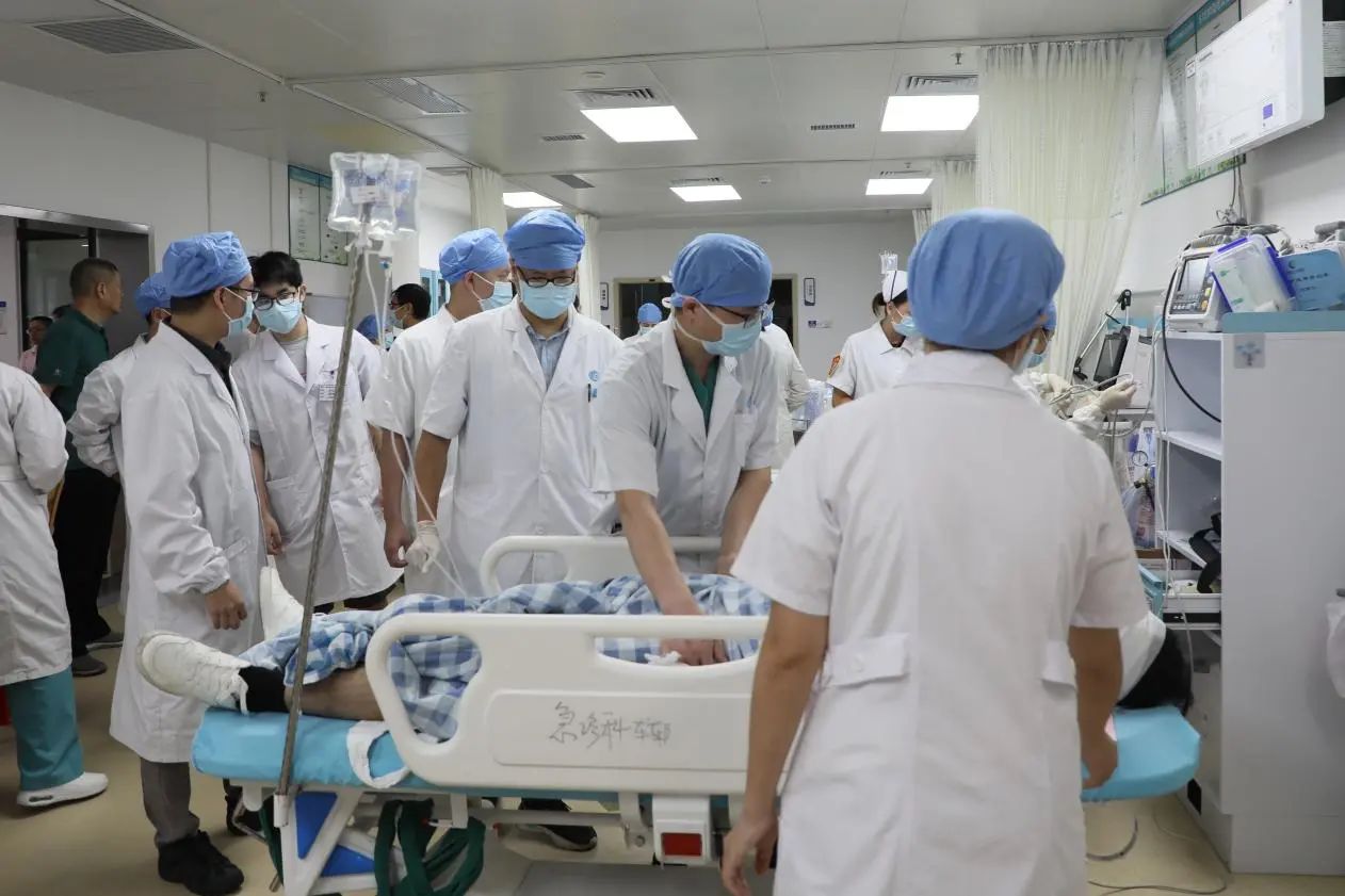 在应急工作领导小组统筹指挥下,应急办公室、医疗救护小组、后勤保障小组、信息保障小组、舆情应对小组迅速行动,紧密联动。医务部、护理部紧急调配应急救援队伍到急诊科集合,为接收本院及外院救护车送来的伤员严阵以待。同时抢救设施、药品及时到位。安保人员维持现场秩序,畅通“生命通道”。