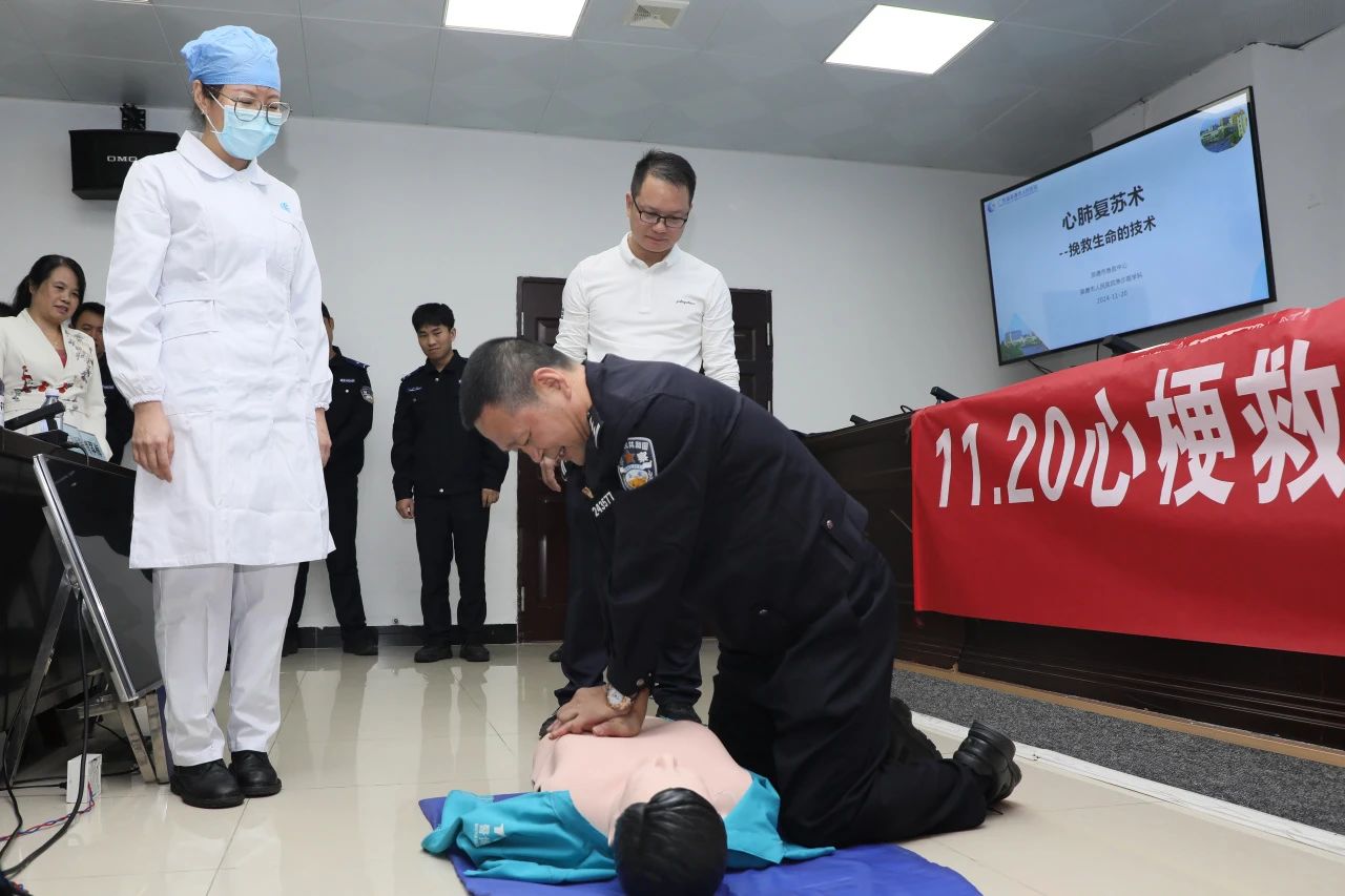 11月20日是中国心梗救治日。当天,英德市人民医院组织医护团队到英德市公安局开展主题健康宣教活动,向公安干警们普及心梗救治知识,提升他们在日常工作与生活中的健康意识和应急处置能力。