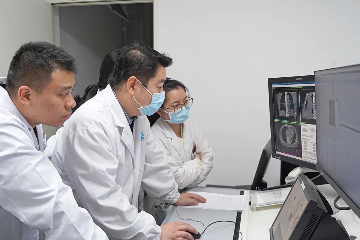 患者陈先生(化名),患右下肺小细胞肺癌。英德市人民医院肿瘤科团队在广东省人民医院放疗科陈志勇教授团队的指导下进行CBCT(锥形束CT)匹配,确保精准定位,为患者进行了精准放射治疗。