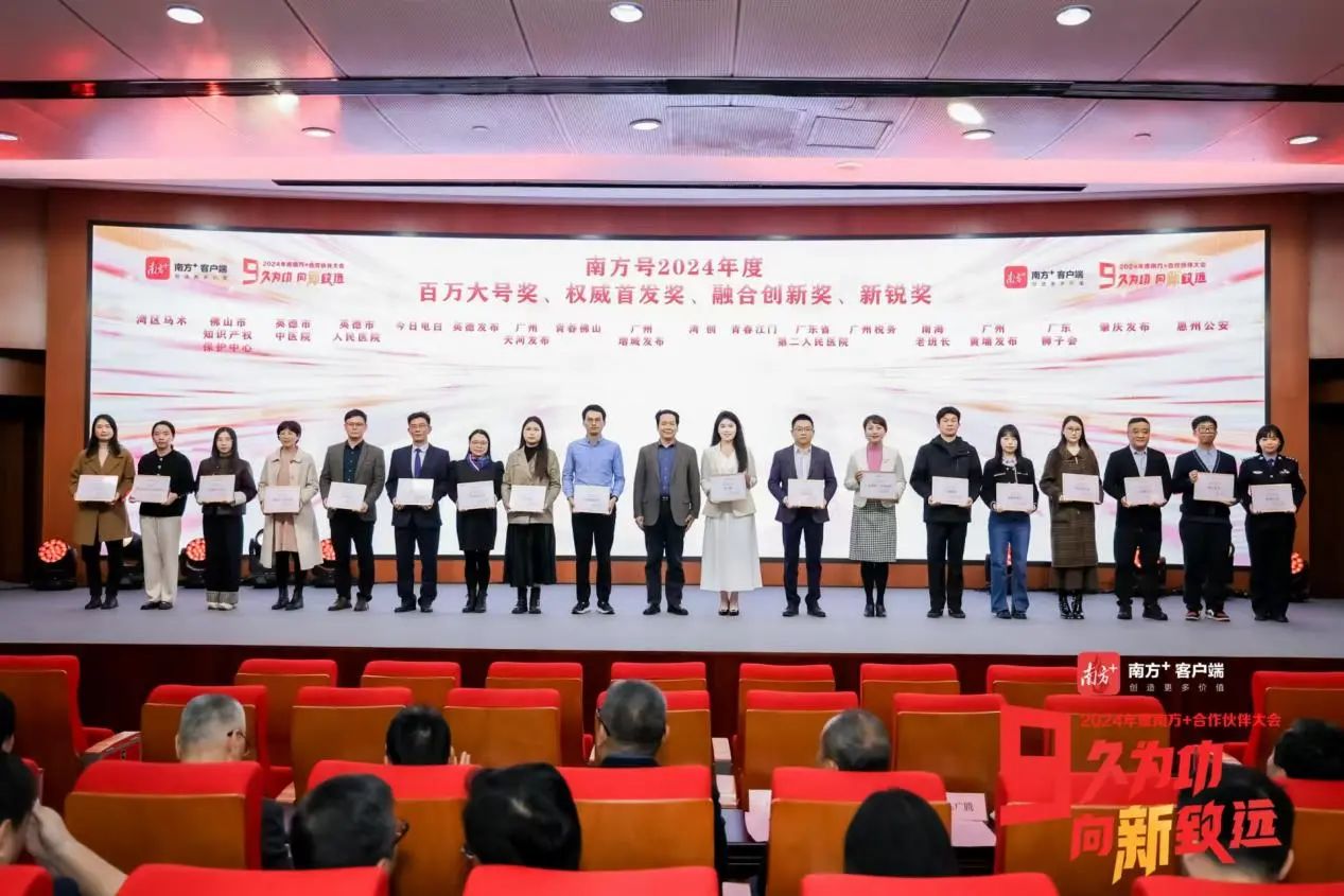 1月9日,2024年度南方+合作伙伴大会在广州举办,颁出了高质量共建频道、南方号、南方+拍客、技术内容合作方及融合运营品牌项目等系列大奖,英德市人民医院获评“南方号2024年度融合创新奖”。