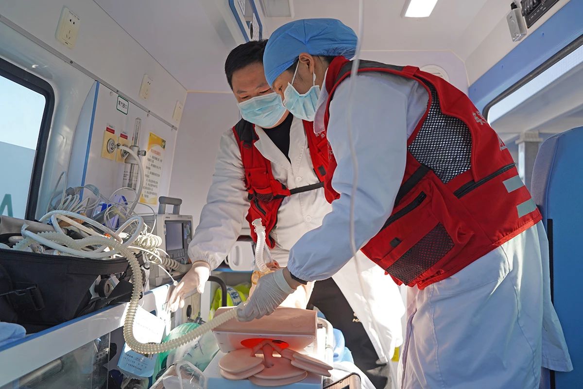 1月7日,医院对春运医疗保障医护人员进行专项培训和考核,要求熟练掌握心肺复苏、电除颤、气管插管、深静脉置管等各项急救技能,进一步提高沟通能力和应急处理能力。