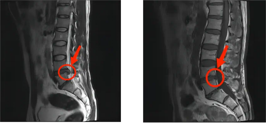 出院后一年,王先生来院复查,通过医学仪器看到椎间盘明显回缩。