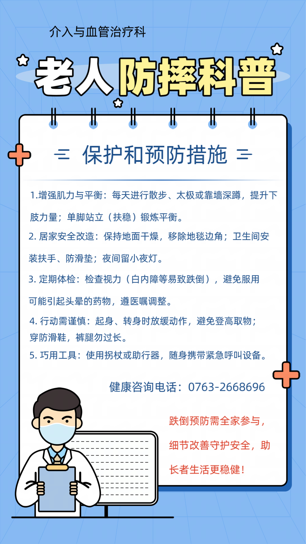 介入与血管治疗科医生表示,老人跌倒极易发生骨折,跌倒已成为导致老年人受到致命伤害的首要因素。如果老年人不慎跌倒引起不适,要尽早到正规医院就诊,由专科医生评估病情,进行专业治疗,以便得到最佳的愈后效果。