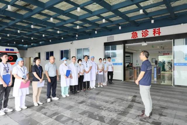 此次演练的模拟场景是因遭受暴雨引发市内部分地区严重内涝,有16名居民被困,其中包括重伤员、骨折患者、孕晚期孕妇、受伤儿童等6名患者。下午4时,冯锡光宣布演练正式开始。急诊科接到120指令后迅速出诊,医院同步启动Ⅲ级应急响应,集结救援队伍奔赴现场,并开通院内绿色通道。