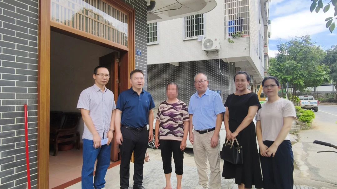 左起为连江口卫生院陈晓东、人民医院蒋廷森、患者李阿姨,人民医院邓子良、曹涧敏、连江口卫生院李文静