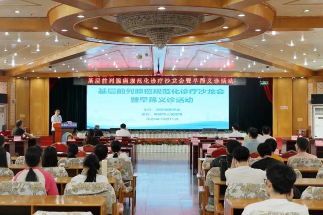 10月11日,由清远市医学会主办、英德市人民医院承办的“基层前列腺癌规范化诊疗沙龙”成功举办。活动聚焦前列腺癌早期筛查与规范化诊疗,探讨前列腺癌诊疗的热点问题,旨在促进基层医疗单位学术交流与临床实践创新,推动多学科协作诊疗模式发展。来自英德各医疗机构的100余名医务人员参与活动。