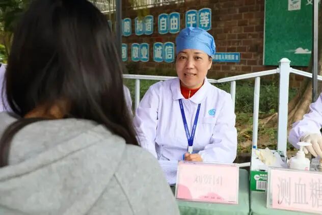 义诊现场气氛热烈而有序。内分泌代谢科主任医师刘锐、副主任医师何丽雅、副主任护师何文芳,中医科主任中医师赵玉军,主任护师刘贤团,营养科营养师张嘉怡等专家,耐心细致地为每一位前来咨询的市民提供糖尿病及相关慢性代谢性疾病的专业评估和个体化诊治建议,并结合常见问题带来的健康风险,并据此给出了针对性的健康指导。内分泌科护理团队为有需要的群众免费的测量血压、血糖、腰围、臀围等,并现场示范和指导正确的血糖自我监测技巧,帮助患者更好地掌握日常管理技能。