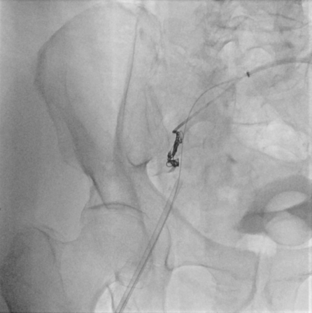 右侧髂内动脉瘤分支血管弹簧圈栓塞图