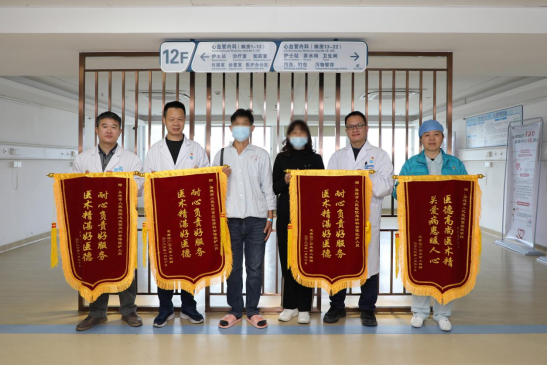 1月30日上午,英德市人民医院心血管内科病房暖意融融。即将康复出院的陈先生(化名)与家人一起,将4面感谢锦旗郑重送给心血管内科、急诊科、重症医学科及黄世英护士长手中。“是你们给了我第二次生命,十分感谢英德人医的医护团队!”陈先生与家属紧紧握住医护人员的手,连连道谢。现场温情洋溢,医患真情自然流露。