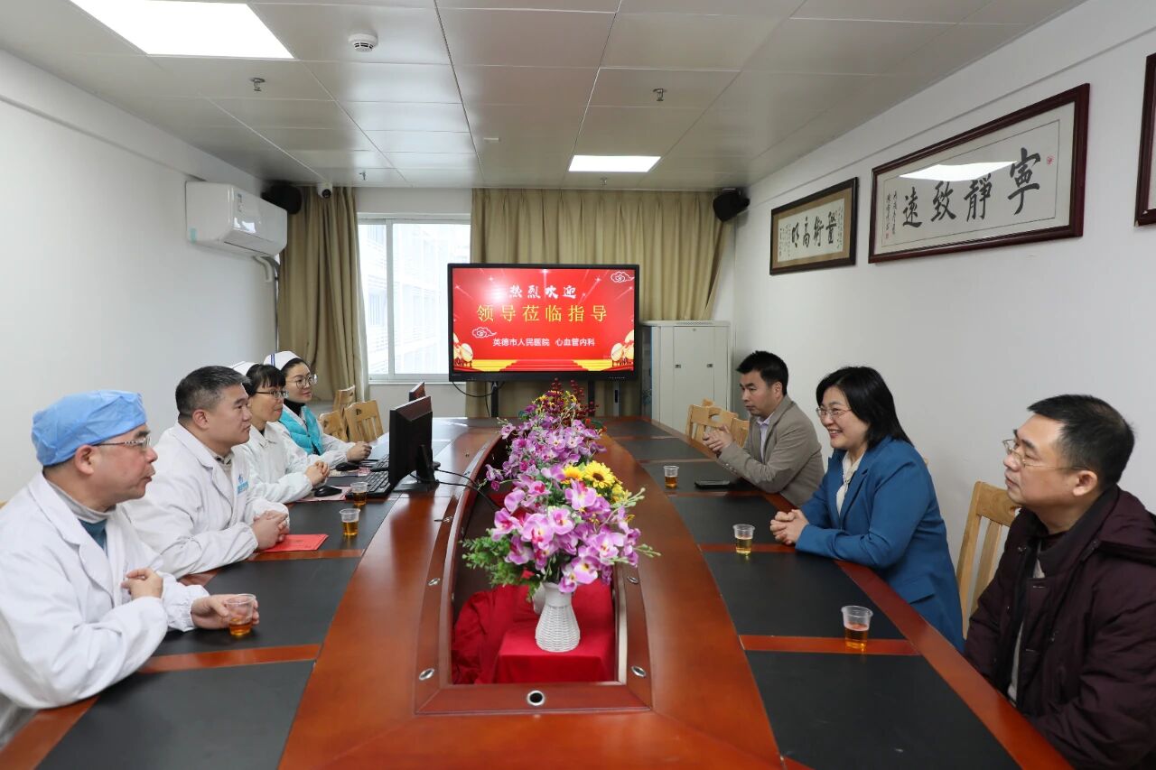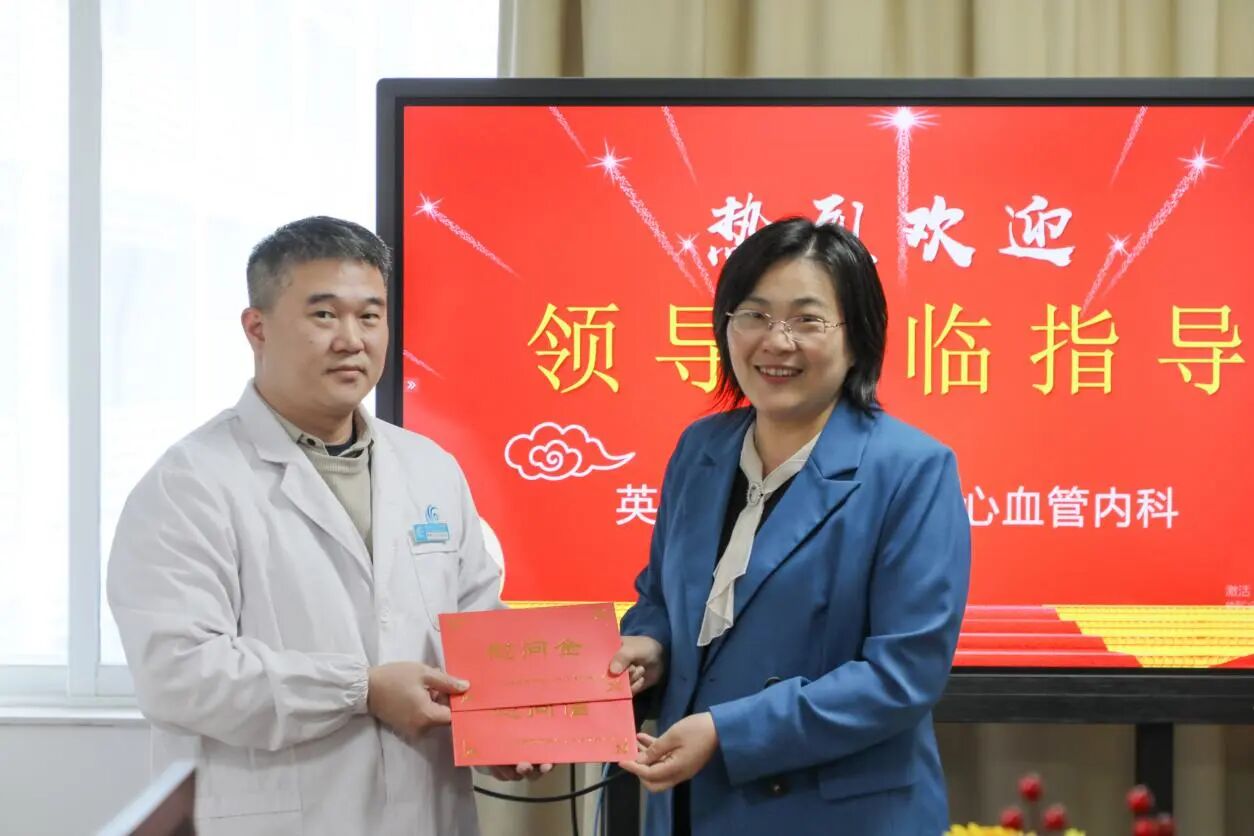 新春送暖,关爱人才。2月11日,英德市人民政府副市长李巧玲到市人民医院慰问心血管内科高职称人才骆嵩山,并向坚守临床一线的医护工作者致以节日的问候与祝福。英德市人民政府办公室副主任杨霄飞、市卫生健康局党组成员沈习文、市人民医院党委书记吴凡宇陪同参加慰问。