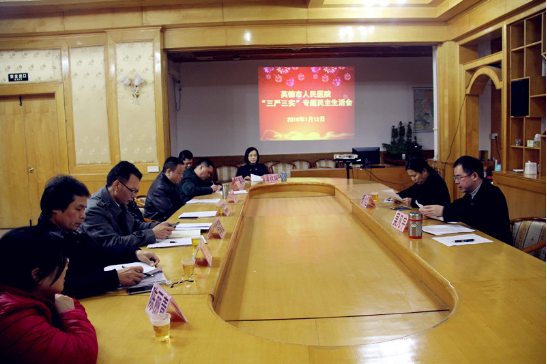 1月12日下午,英德市人民医院班子在五楼小会议室召开2015年度“三严三实”专题民主生活会,卫计局党委书记、局长植小红、我院领导班子、党总支委员、各支部书记、群众代表等参加会议,会议由我院党总支书记、院长吴凡宇主持。班子成员围绕“严以修身、严以用权、严以律己、谋事要实、创业要实、做人要实”的主题,紧密结合思想和工作实际,结合各方意见和建议,深入查摆问题,严肃认真开展批评和自我批评。整个会议过程气氛严肃认真,推进了工作、增强了友谊、促进了团结、达到了预期的效果。