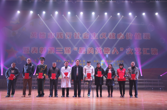 2016年1月20日,由中共英德市委、市人民政府举办的“你我同行,践行社会主义核心价值观”暨第三届“最美英德人”表彰活动,在市文化艺术中心101报告厅举行。我院吴凡宇院长荣获“最美英德人”称号。